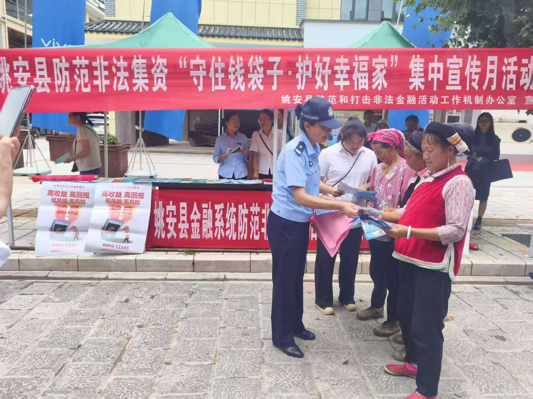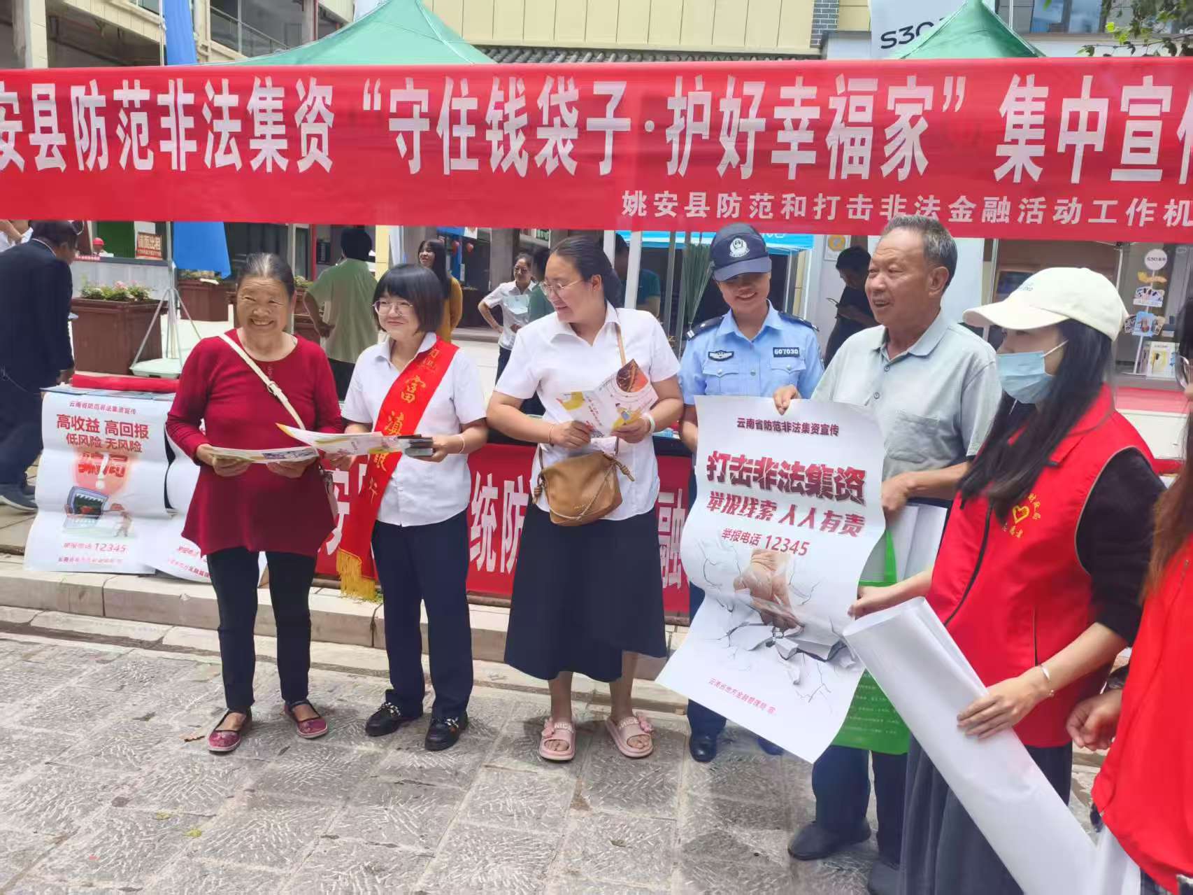 为进一步增强广大群众对非法集资的防范意识,6月15日,姚安县公安局经侦大队联合县金融监管局、财政局、信用社、人保财险公司、中国人寿公司等十五家单位在县城西大街共同开展2025年“守好钱袋子 护好幸福家”防范非法集资“6.15”集中宣传日活动。