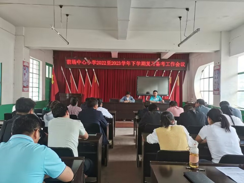 2023年6月6日,前场中心小学召开2022—2023学年下学期复习备考工作会议,前场中心小学班子成员、前场各小学校长、全前场镇语文、数学学科组长参加会议。