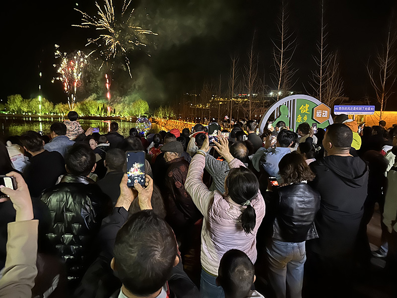 元宵节当天,光禄古镇人气“爆棚”。一荷一清欢景点聚集了数千人围观烟花表演,接踵而至的人潮分布在荷塘广场、栈道、星光帐篷、观景台、光禄时光中餐厅,游客各自选择最佳观赏位置,观赏绚丽多彩的烟花表演。满城烟花,满眼星辰,众多游客在烟花下许下美好的心愿。