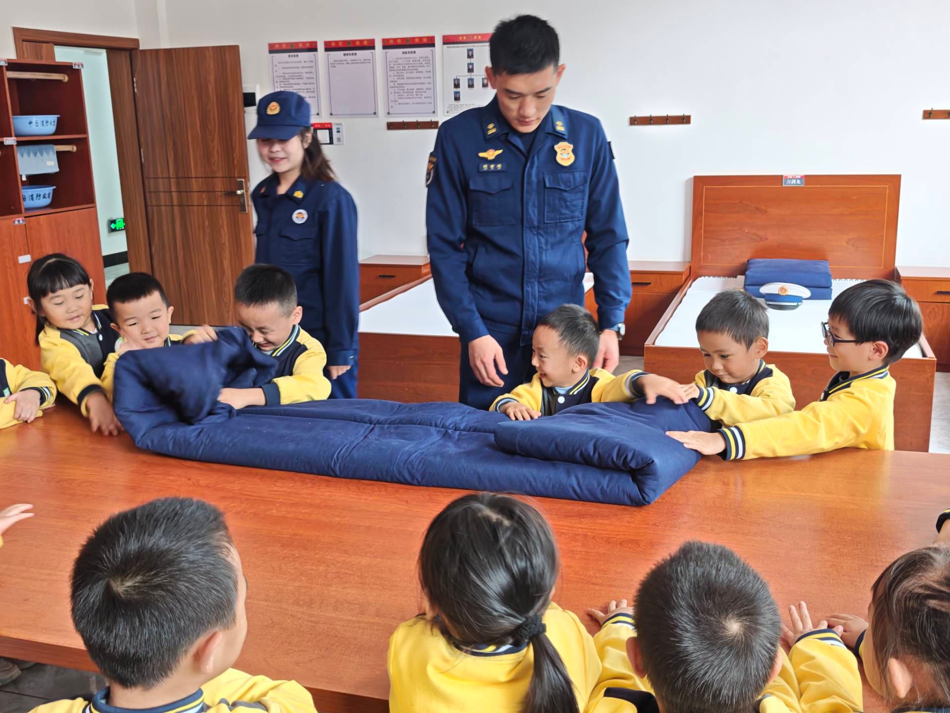 在消防装备展示区,孩子们了解了各类消防服的功能与用途,从灭火防护服到抢险救援服,每件装备都藏着守护生命的秘密。在消防员叔叔的帮助下,孩子们还穿上了消防服,戴上安全头盔,化身“小小消防员”,这一刻,孩子们不仅感受到了消防服的重量,更真切地体会到了消防员叔叔肩上那份守护人民生命安全的重任。