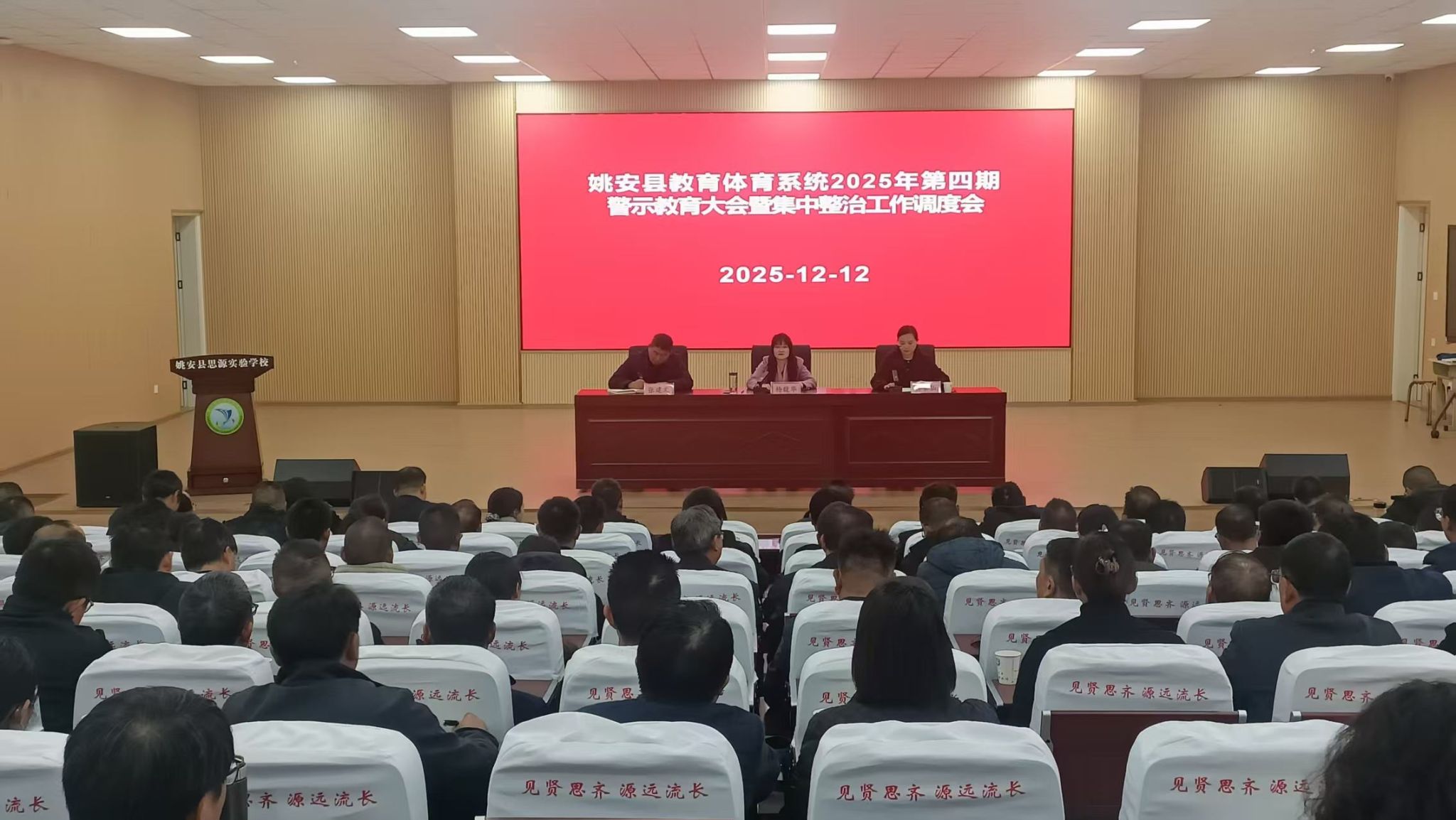 近日,姚安县教育体育系统召开2025年第四次警示教育大会暨集中整治工作调度会,深入贯彻落实中央、省州县关于全面从严治党和党风廉政建设工作部署,推动教体系统正风肃纪反腐工作走深走实。会议由县人民政府副县长杨家仙主持,县委副书记、教育工委书记杨馥华到会并讲话,县委教育工委、县教育体育局领导班子成员,县纪委监委派驻教体局纪检监察组负责人,局机关各股室负责人及全县各级各类学校(含幼儿园)中层及以上学校领导共300余人参会。
