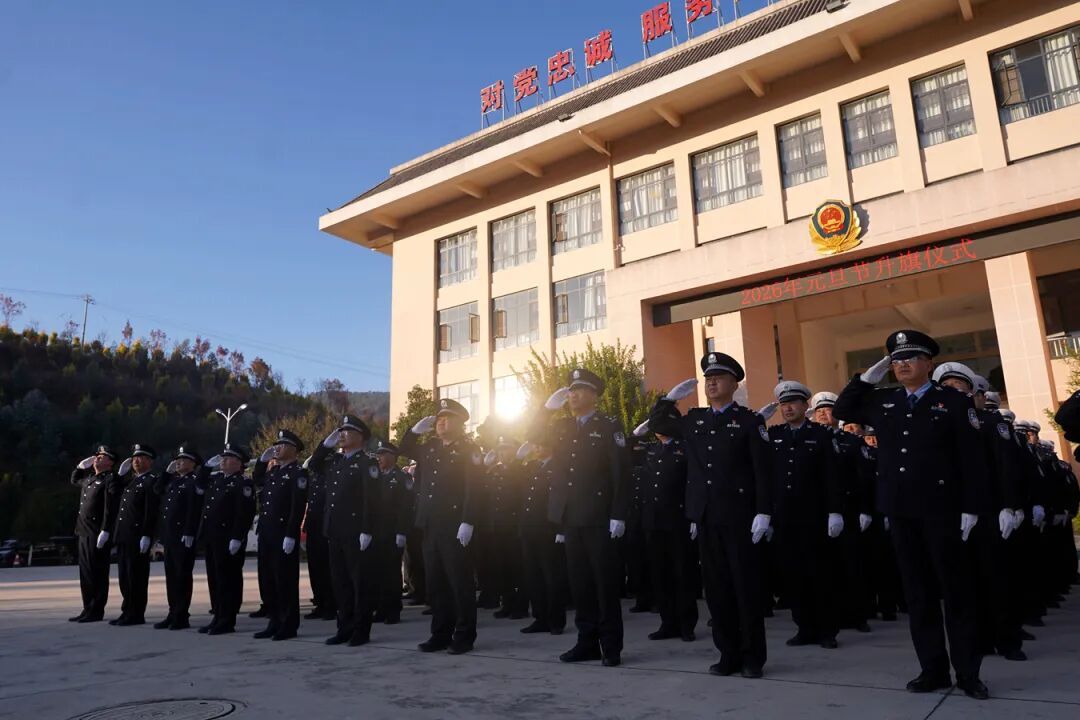 为进一步凝聚警心,鼓舞斗志,强化使命担当,2026年1月1日上午,姚安县公安局举行元旦升国旗仪式。县局党委班子成员,全局除值班外全体民警、辅警参加了仪式。