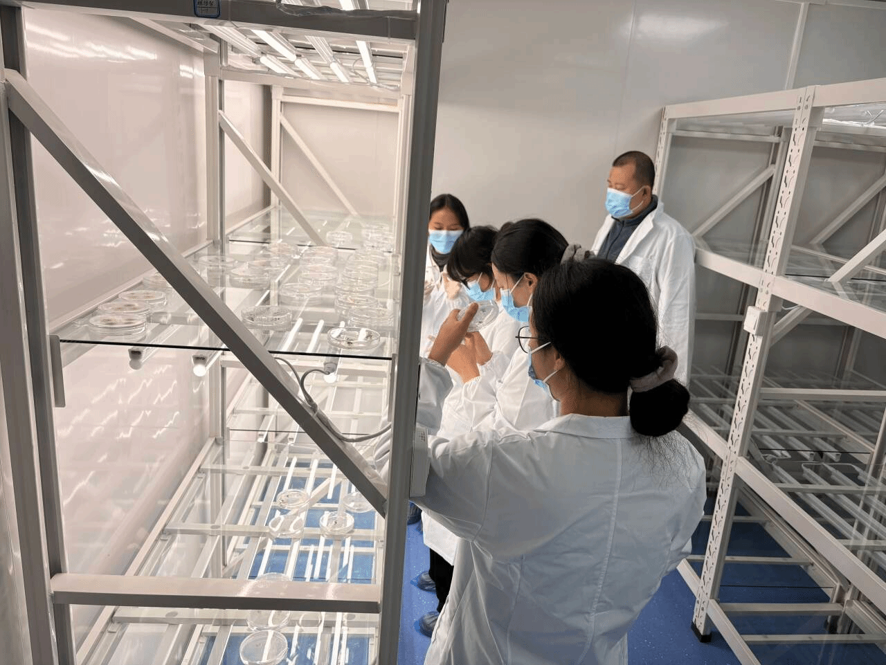 双方精选市场热门月季品种,以当年生健壮半木质化枝条的腋芽为外植体,共同搭建“高校实验室+产业学院实训基地”的双轨培养平台,开始了第一次初代培养。 培训负责人细致讲解每一步实验操作流程及原理,从实验方案设计、培养基配方优化到关键技术指导,培训的职中教师们认真学习,职中祁老师说:“我们要把每一个技术细节都学会,才能更好地带着我们的职中学生来实验室开展课程。”