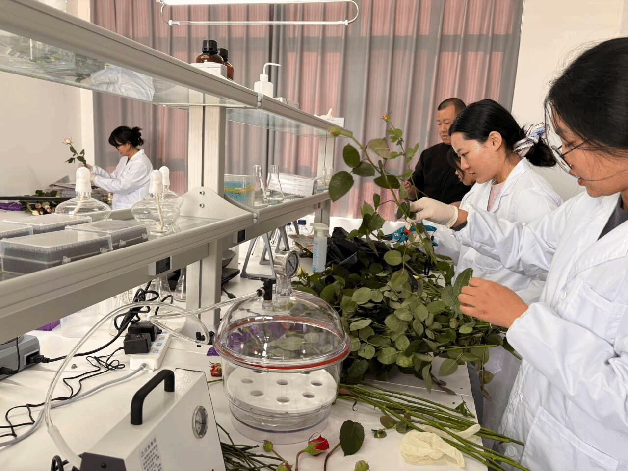 近日,云南大学农学院周宁宁副研究员及沈寿天等5名硕士研究生在姚安县职业高级中学花卉产业学院开展5个主流月季品种组培快繁联合攻关项目培训,这场高校科研实力与中职产业实践的深度碰撞,不仅建立了高效稳定的月季规模化繁育体系,更谱写了产学研融合赋能乡村振兴的新篇章。