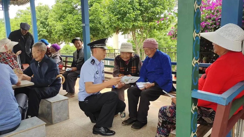 为深入开展打击整治养老诈骗专项行动,预防和遏制养老诈骗案件的发生,进一步保障辖区老年人的合法利益,增强广大群众安全防范意识。近日,姚安县公安局官屯派出所有针对性的选取辖区老人经常性聚集的场所,分散开展打击整治养老诈骗集中宣传活动。