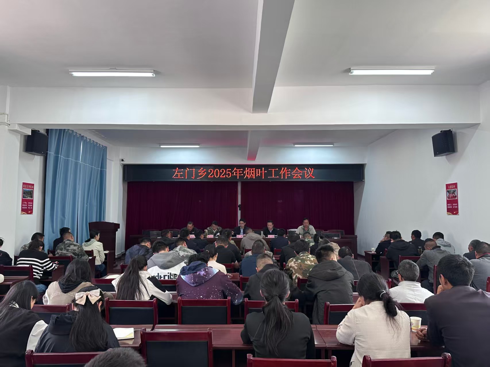 4月16日下午,左门乡召开2025年烟叶工作暨烤烟整地移栽现场会。乡党政班子成员、乡级各办公室(中心)主任、挂村组组长、各村党总支书记(村委会主任)、驻村第一书记、烟叶站职工、种烟大户代表参加了会议。