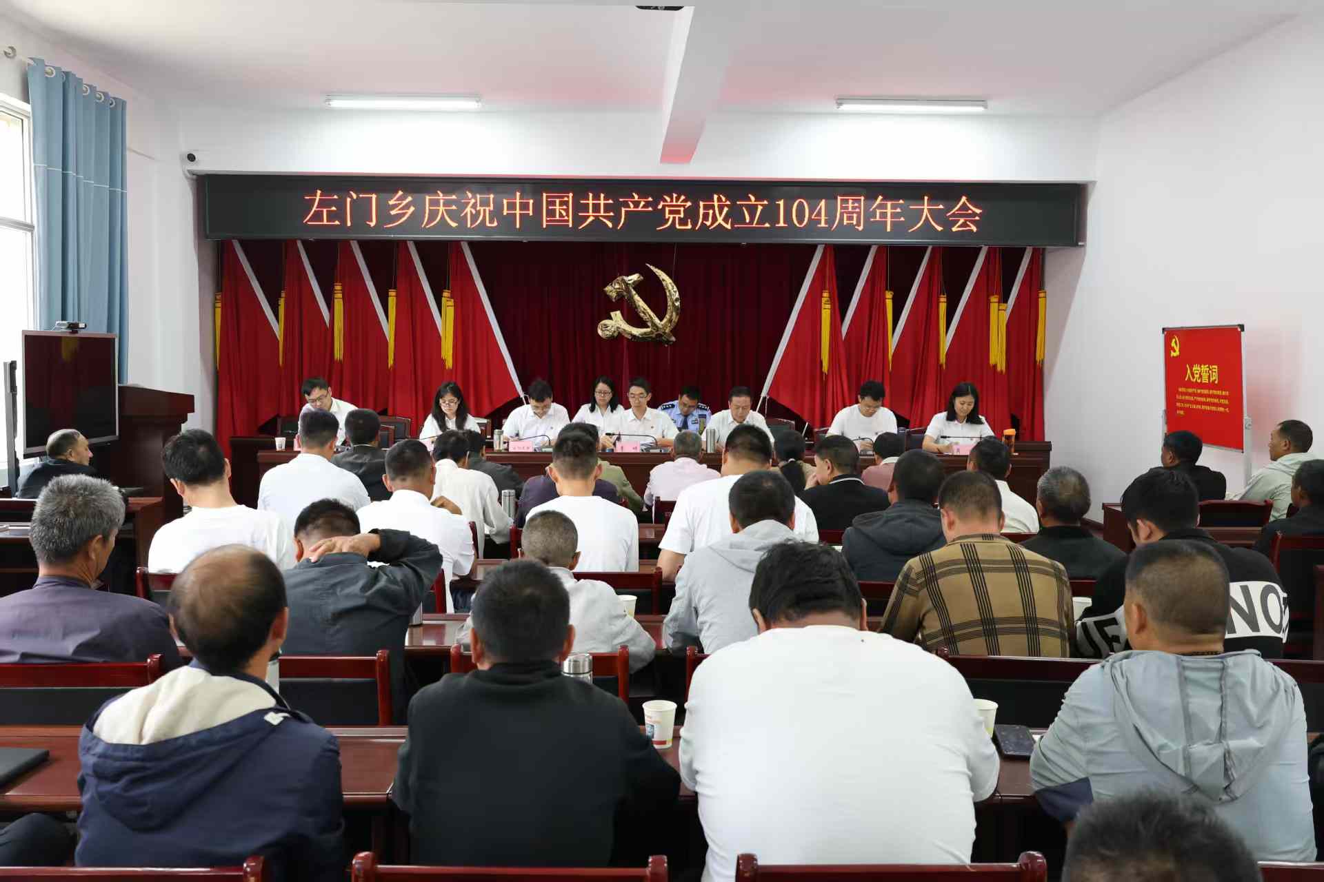为庆祝中国共产党成立104周年,回顾党的光辉历程,总结党的历史经验,弘扬党的优良传统,进一步增强全乡各级党组织的凝聚力和战斗力,号召全体党员不忘初心、牢记使命,传承红色基因,充分发挥党员的先锋模范作用,以更加饱满的热情推动左门乡高质量发展。2025年6月30日,左门乡召开庆祝中国共产党成立104周年大会。
