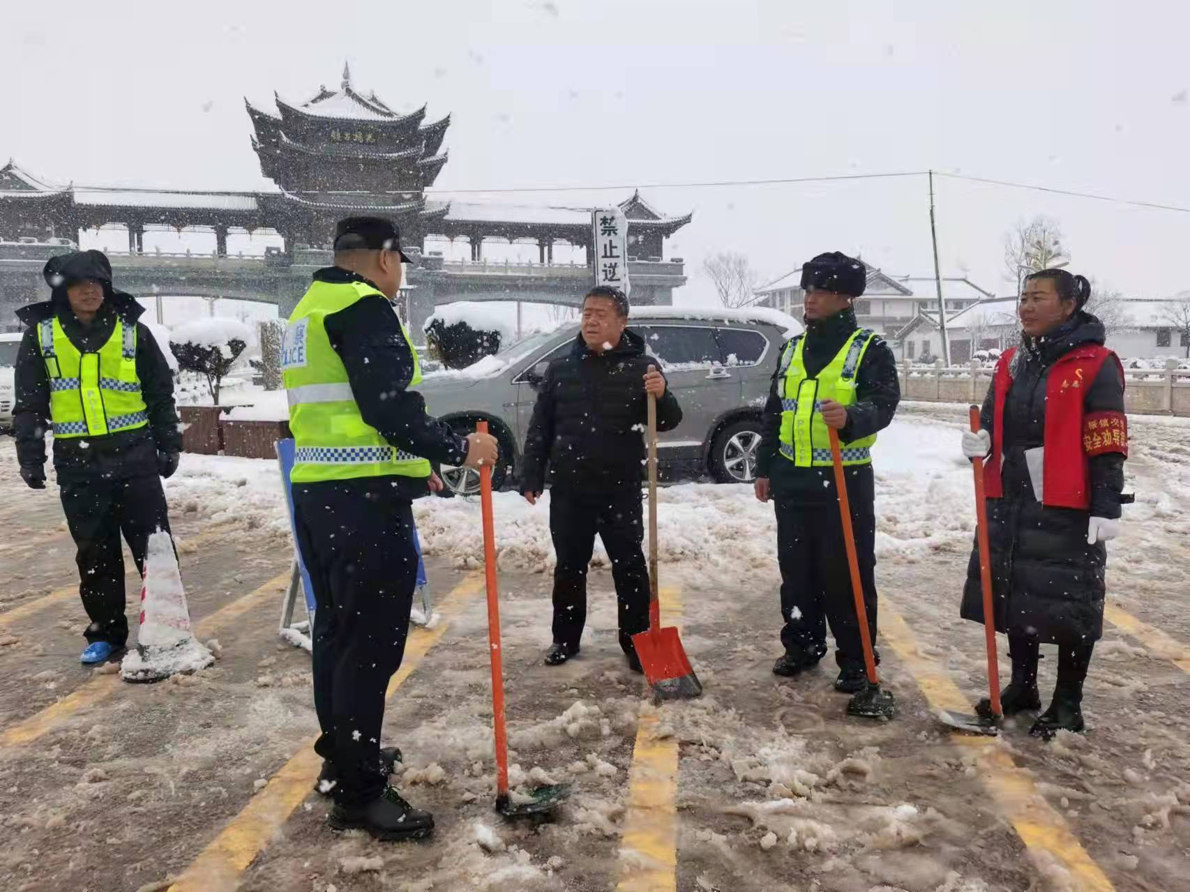雪情期间,光禄镇党委、镇政府迅速启动应急预案,组建了一批由光禄派出所和干部职工组成的交通安全协管员,实行交通管制,劝导群众不出门、不聚集、不开车,同时铲除路面积雪和结冰,确保群众的出行安全。