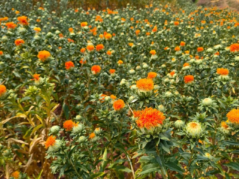 地索村依托气候资源优势,探索打造红花种植示范田,以花为媒,以花兴农,以红花助力农民“花样”致富。