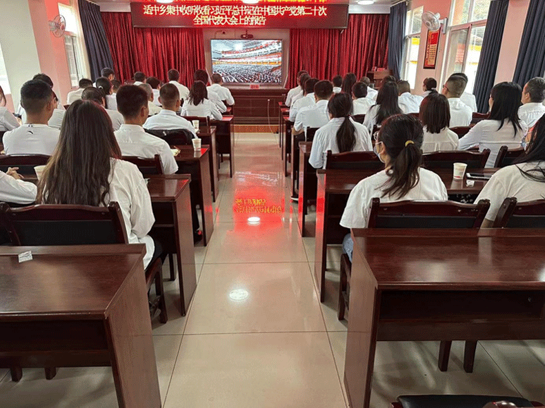 10月16日上午10时,中国共产党第二十次全国代表大会在北京人民大会堂开幕。适中乡组织各族干部群众集中收看党的二十大开幕会。