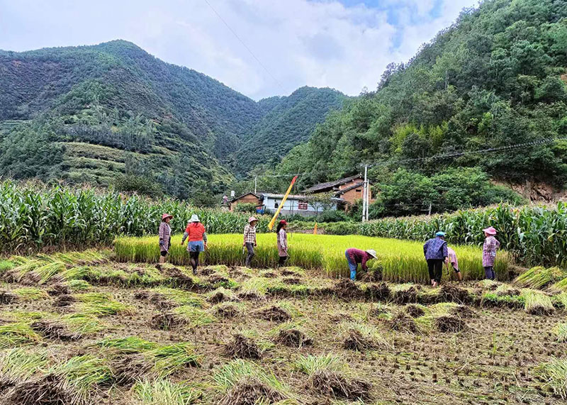 一线助力,夺取秋收全面胜利。入秋后降温加剧,给后期秋粮及农作物收储带来影响,100多名镇村干部践行“我为群众办实事”的承诺,发扬一线工作法,以挂村工作组为单位,两天一次入户了解稻谷、玉玉、烤烟和蔬菜收储情况,到各自包保农户家中帮忙收玉米、晒稻谷、采烤烟、预约卖烟,轮班到烟叶站帮忙打包,联系卖蔬菜等,全镇上下沉浸在丰收的喜悦中。至2022年10月13日,全镇抢收稻谷4187亩,产量2512.2吨;收获玉米10913亩,产量6625.45吨,完成烤烟采烤2220亩,产量46万公斤。(刘钐言)