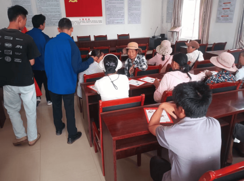 “光听不练假把式,咱得亲手试试!”课堂转入实操环节,“蓝朋友”们不仅传授了如何扑救初期火灾、火场如何自救逃生、如何正确拨打报警电话等救命要诀,更带来了实战演练。他们手把手地指导村民如何操作灭火器的“提、拨、握、压”四字真经。在队员们的悉心指导下,村民们按捺不住,纷纷上前体验,亲手提起灭火器,认真学习体验。现场气氛热烈,互动踊跃,村民们从“听得懂、学得会”跃升到“记得住、敢操作”,真正掌握了在危机时刻沉着冷静、正确处置的底气。