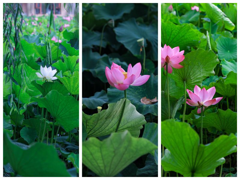 光禄的田园菏花,次第开来。花蕾如星星,撒满绿叶间,直挺挺地在绿茎上,或核,或桃,或拳,等着绽放。已开了的花,如盏盏灯,点缀在碧海般的荷田里,柔和地灿烂,夺目地温雅。瓣或开或聚,润玉雕成一样,极富质感,却又生动天然。花谢瓣落,籽实结梗,那一朵,圆而立体,盘盘焉,致敬有礼,等待着莲子的收获。