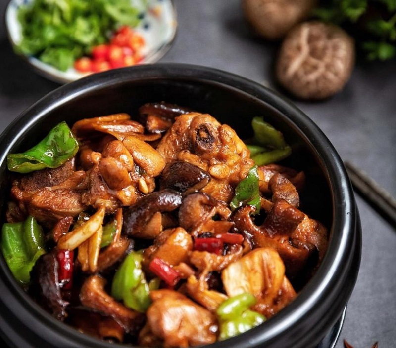 4.黄焖鸡。鲜嫩的鸡肉,搭配青椒、香菇等配菜,在浓郁的汤汁中炖煮,入口爽滑弹牙,汤汁浓郁而不油腻,每一口都能感受到浓郁的鸡肉香味,让人回味无穷。