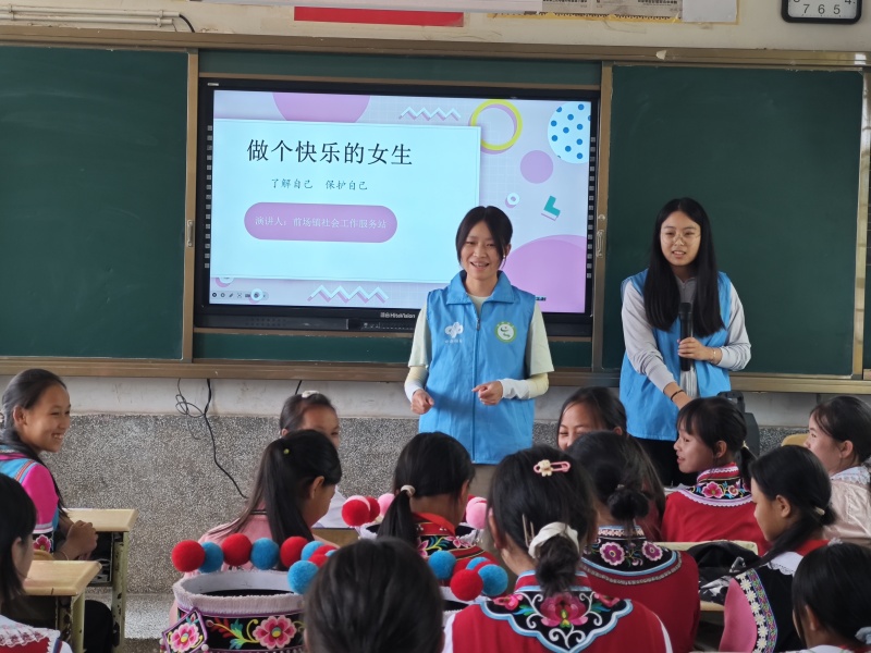 推动社工参与,开展专业服务。前场镇社工站针对留守女童开展需求调研,围绕女童生理健康知识普及、女童自护教育等方面开展服务活动,全面呵护农村留守女童健康成长。前场镇社工站以“六一”儿童节校园活动为契机,联合姚安县民政局、妇联、团委、姚安县初心社会工作服务中心等部门到前场镇新民小学、木署小学开展“健康成长,欢度六一”女童自护活动,为两所小学四至六年级62名女生发放健康包和女童背心,并为孩子们详细介绍了物品的用途和使用方法,引导女童们关注生理健康问题,培养良好的卫生习惯,增强自我保护意识,珍惜美好的青春期时光。同时,还开展了防侵害、防溺水、防诈骗等方面的安全知识普及,通过有奖抢答的方式,让孩子们思考遇到危险时的解决方法,从而提高孩子们的自我保护能力。