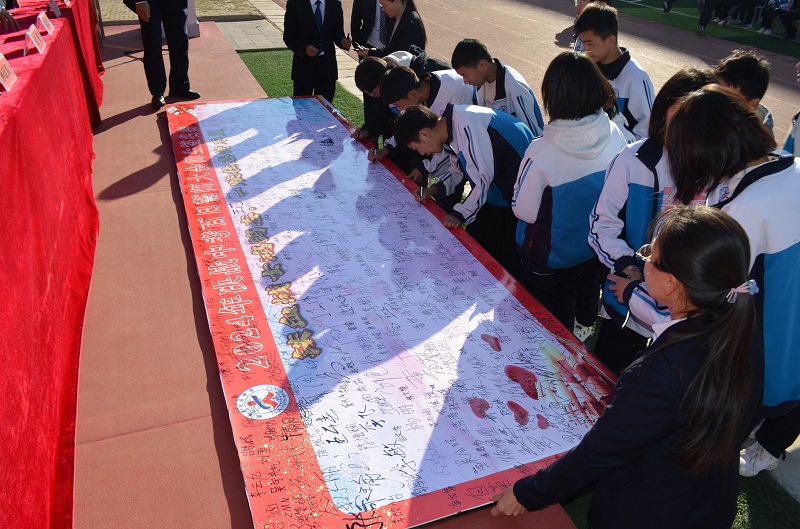最后,分别由师生代表带领老师、学生进行宣誓。全体师生在签字板上郑重签名。