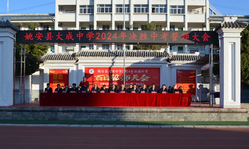 为做好初三年级中考考前动员、缓解学生考试焦虑,明确师生工作目标,理清工作思路,凝聚工作合力,决胜2024年中考。3月8日上午,姚安县大成中学组织初三全体师生、部分家长代表在学校运动场举行“姚安县大成中学2024年决胜中考百日誓师大会”。