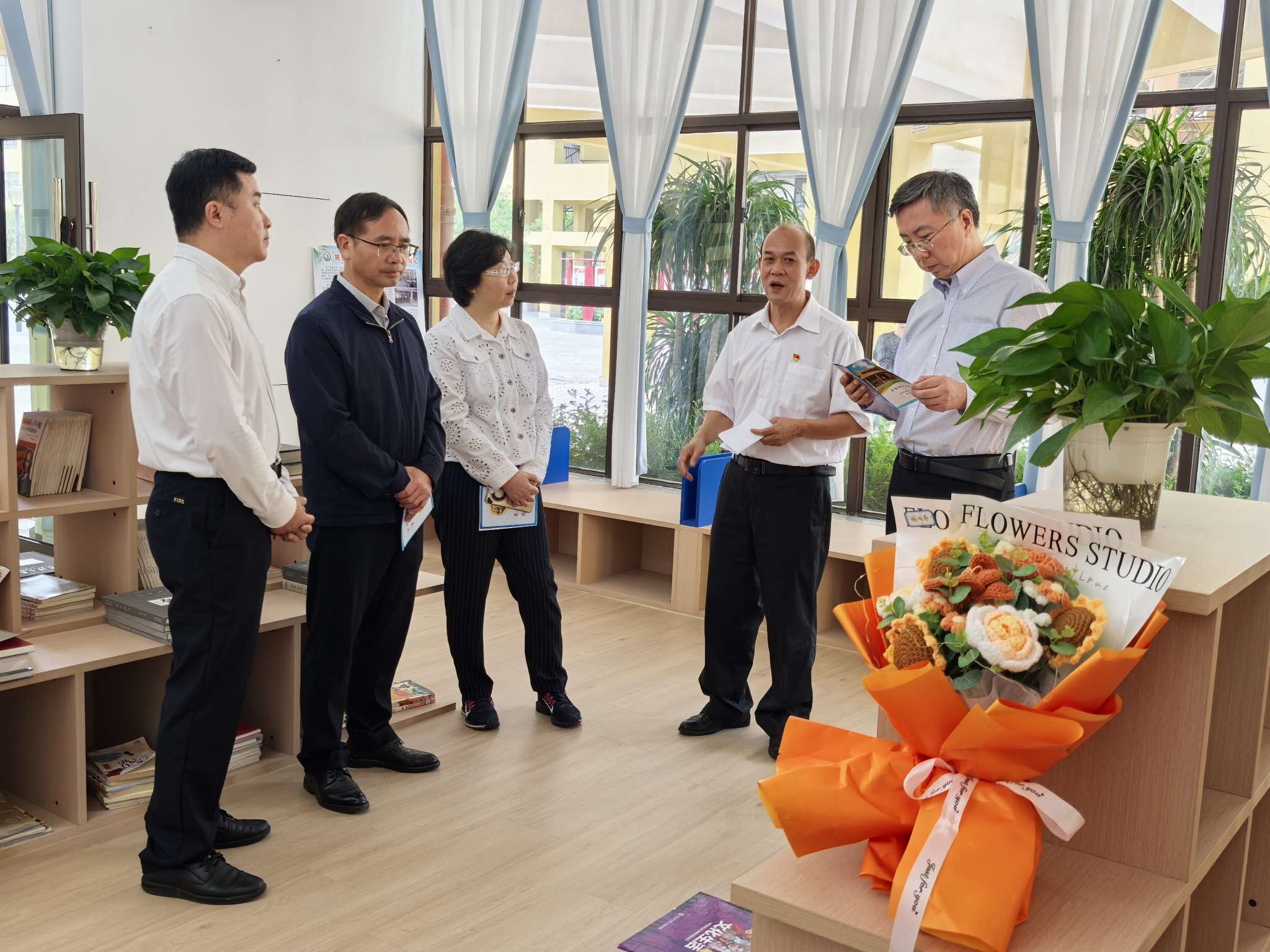 调研过程中,姚安县思源实验学校党支部书记、校长钱宏斌详细介绍了学校图书馆的建设理念、空间布局及日常阅读活动组织模式,重点阐述了图书馆在服务教学、助力学生阅读习惯养成中的核心作用。随后,调研组实地参观了学校图书馆,对馆内温馨的阅读环境及多样化的阅读活动给予高度评价。