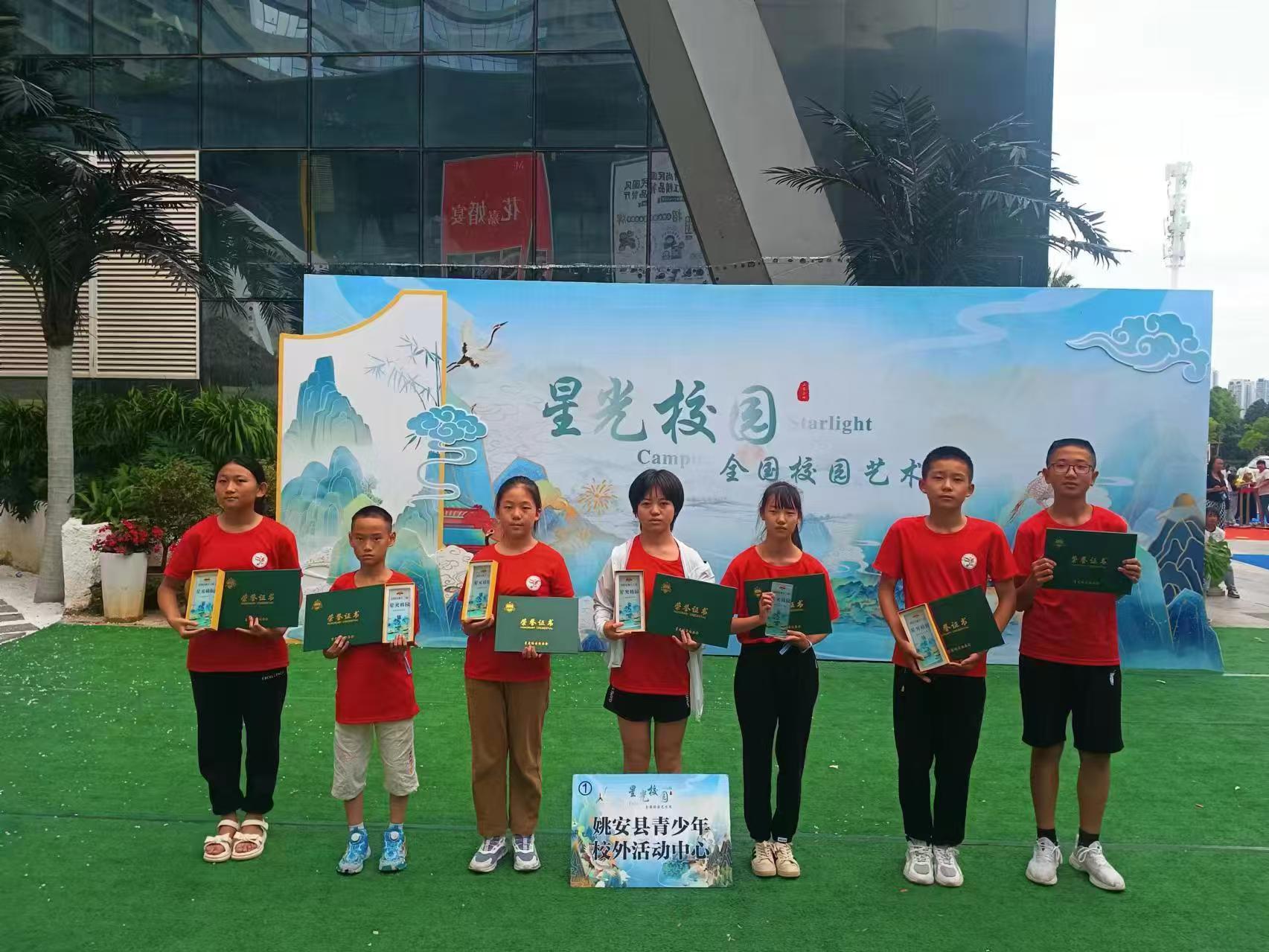 赵鹏程同学荣获特金奖晋级参加北京全国书法大赛、张琪等8人荣获儿童创意画、色彩类金奖;李妍姿等10人荣获软笔书法儿童B组金奖,其余同学获得银奖。姚安县青少年校外活动中心陈建荣、向键、钮彩芝、邵美萍四名专业教师荣获明星指导教师称号,姚安县青少年校外活动中心被授予“全国青少年教育金牌单位”“全国青少年艺术人才培训基地”称号。
