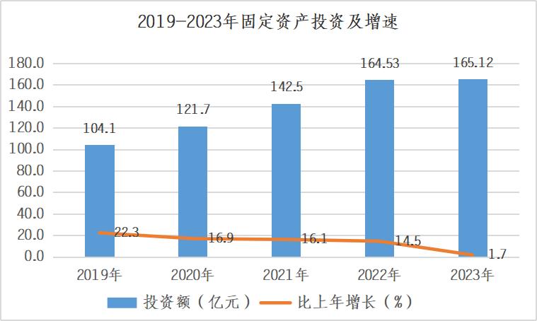2023年,全县固定资产投资(不含农户)165.12亿元,同比增长1.7%。