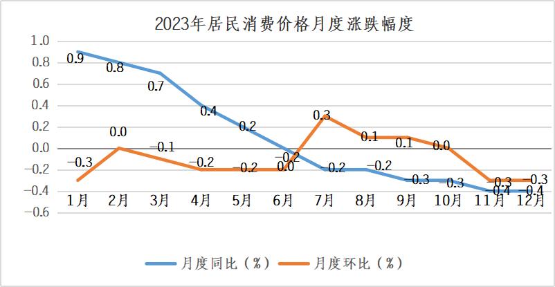 市场物价持续下降。2023年全年居民消费价格总水平比上年下降0.4%,其中食品类上涨0.7%。商品零售价格总水平比上年上涨1.0%。