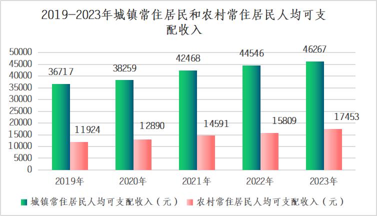 城镇常住居民人均可支配收入46267元,比上年增加1721元,增长3.9%。城镇常住居民人均消费支出28151元,比上年增加2181元,增长8.4%。