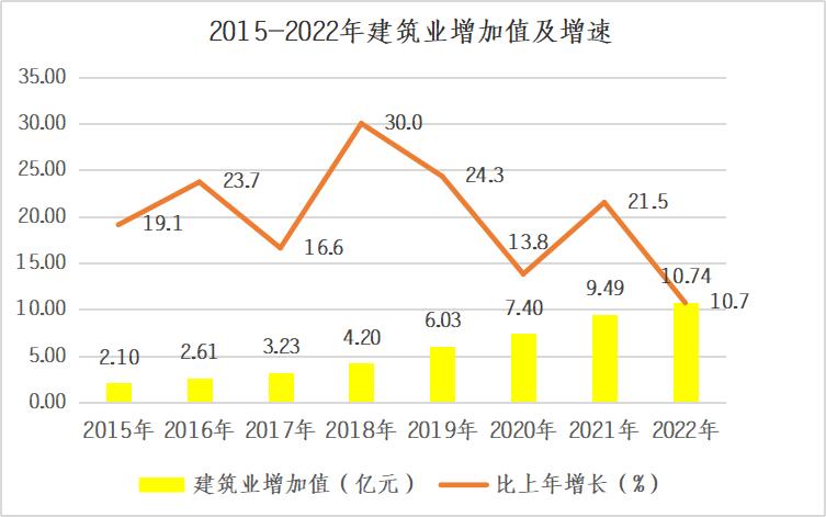 全县资质内本地建筑业企业完成建筑业总产值42.86亿元,比上年增长27.3%, 全年建筑业实现增加值10.74亿元,比上年增长10.7%。