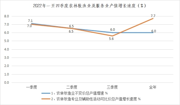 2022年一至四季度农林牧渔及服务业总产值增长情况表