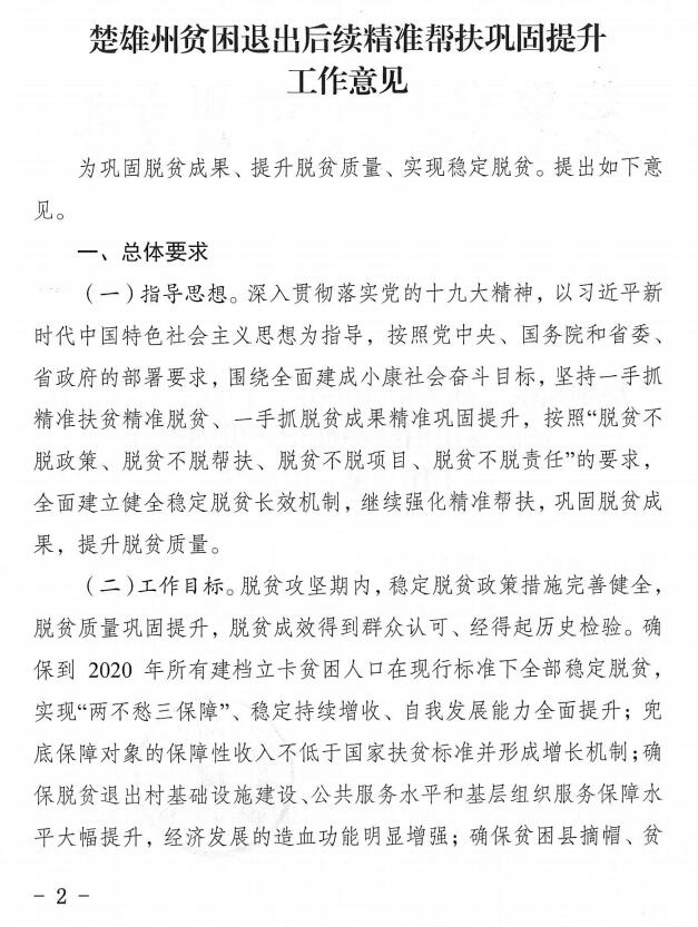 楚雄州扶贫开发领导小组关于印发< 楚雄州贫困退出后续精准帮扶巩固提升工作意见>的通知