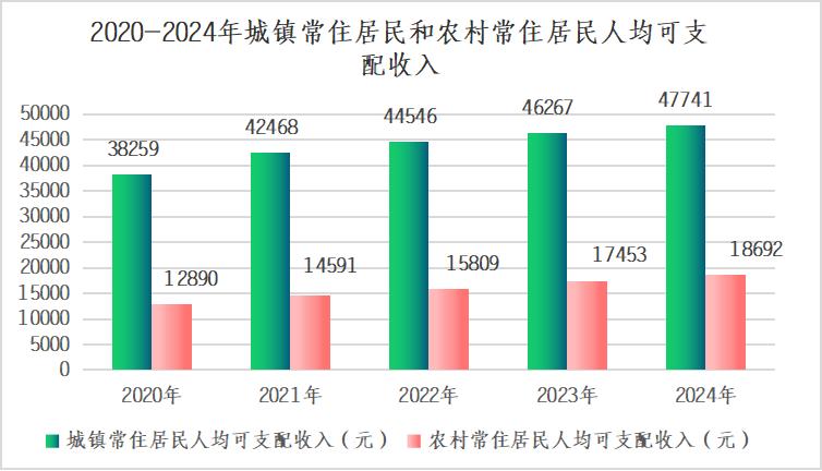 城镇常住居民人均可支配收入47741元,比上年增加1474元,增长3.2%。城镇常住居民人均消费支出30456元,比上年增加2305元,增长8.2%。
