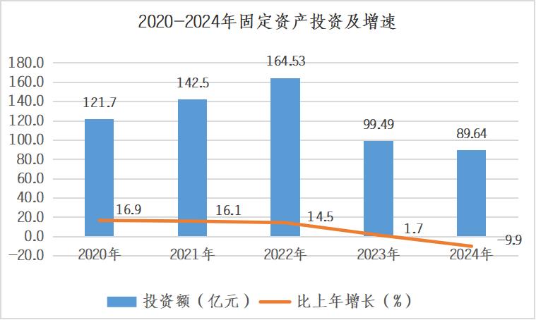 2024年,全县固定资产投资(不含农户)89.64亿元,同比下降9.9%。