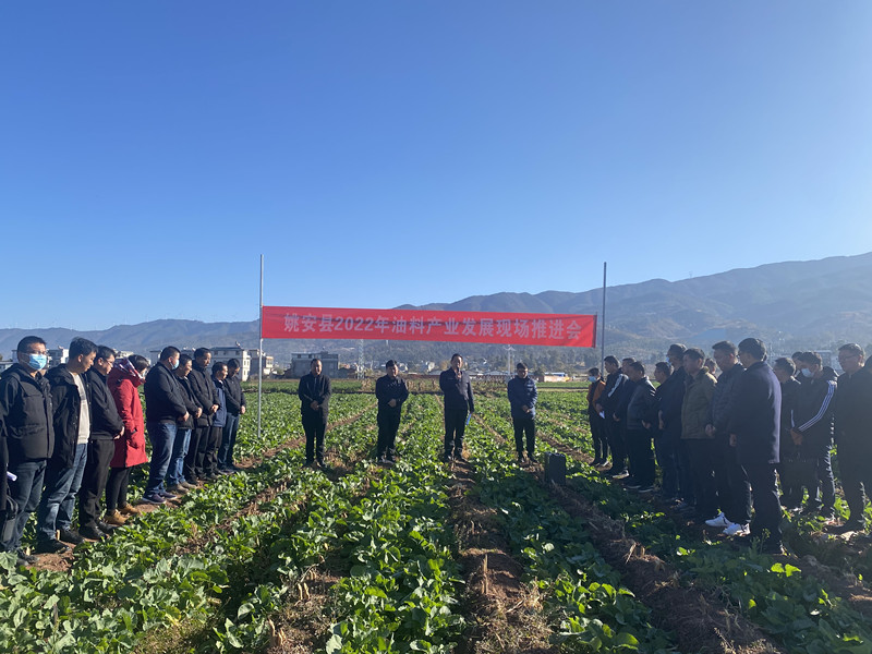 1月1日上午,姚安县在栋川镇清河村委会召开2022年油料产业发展现场推进会。