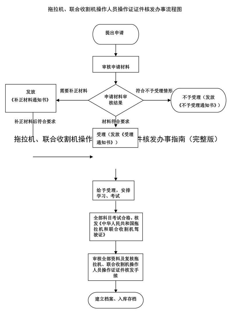 1.申请内容:拖拉机、联合收割机操作人员操作证证件核发申请。