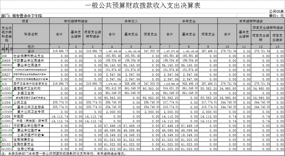 (详见附件:姚安县适中卫生院2017年度部门决算表 公开01表—公开09表)