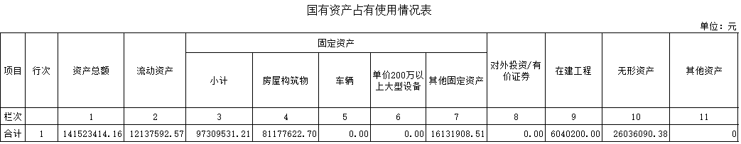 截至2018年12月31日,姚安县栋川镇中心学校资产总额141,523,414.16元,其中,流动资产12,137,592.57元,固定资产97,309,531.21元,对外投资及有价证券0元,在建工程6,040,200.00元,无形资产26,036,090.38元,其他资产0元(具体内容详见附表)。与上年相比,本年资产总额增加8,632,441.12元,其中固定资产增加25,521,662.58元。处置房屋建筑物0平方米,账面原值0元;处置车辆0辆,账面原值0元;报废报损资产0项,账面原值0元,实现资产处置收入0元;出租房屋0平方米,账面原值0元,实现资产使用收入0元。