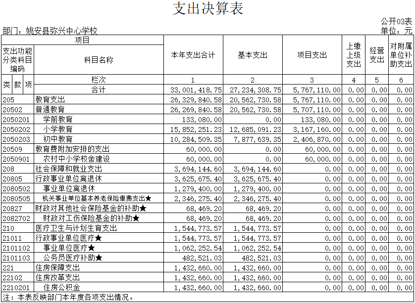 姚安县弥兴镇中心学校2017年度部门决算公开