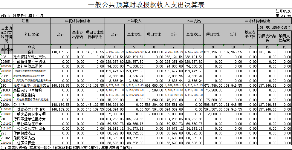 (详见附件:姚安县仁和卫生院2017年度部门决算表 公开01表—公开09表)