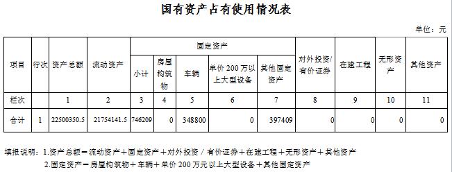 截至2017年12月31日,姚安县扶贫办资产总额22500350.5元,其中,流动资产21754141.5元,固定资产746209.00元,对外投资及有价证券0元,在建工程0元,无形资产0元,其他资产0元(具体内容详见附表)。与上年相比,本年资产总额 增加10700191.5元,其中:流动资产增加10646841.5元,固定资产增加53350.00元。处置房屋建筑物0平方米,账面原值0元;处置车辆0辆,账面原值0元;报废报损资产0项,账面原值0元,实现资产处置收入0元;出租房屋0平方米,账面原值0元,实现资产使用收入0元。