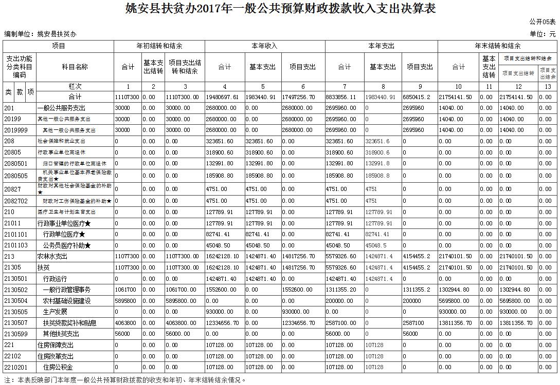 1. 2017年机构数1个即姚安县人民政府扶贫开发办公室。