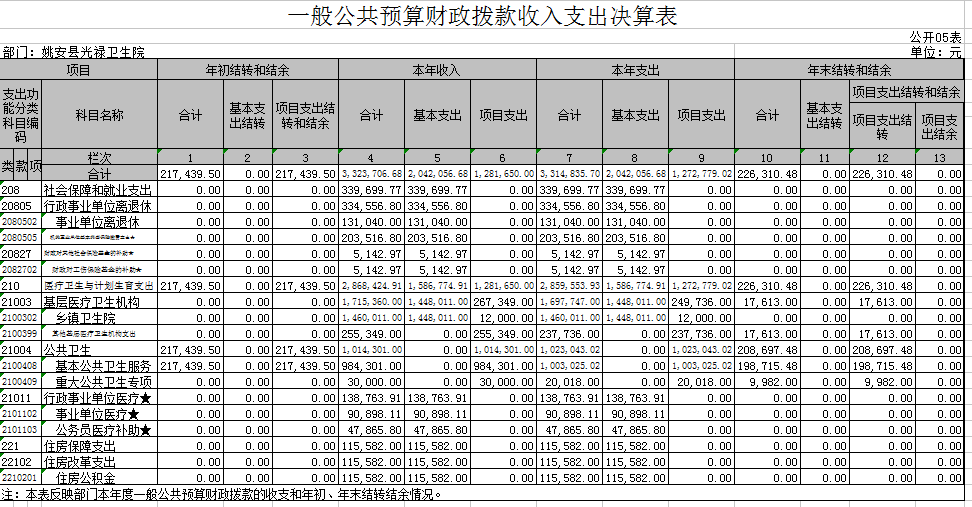 注:本表反映部门本年度的总收支和年初、年末结转结余情况。 | |||||