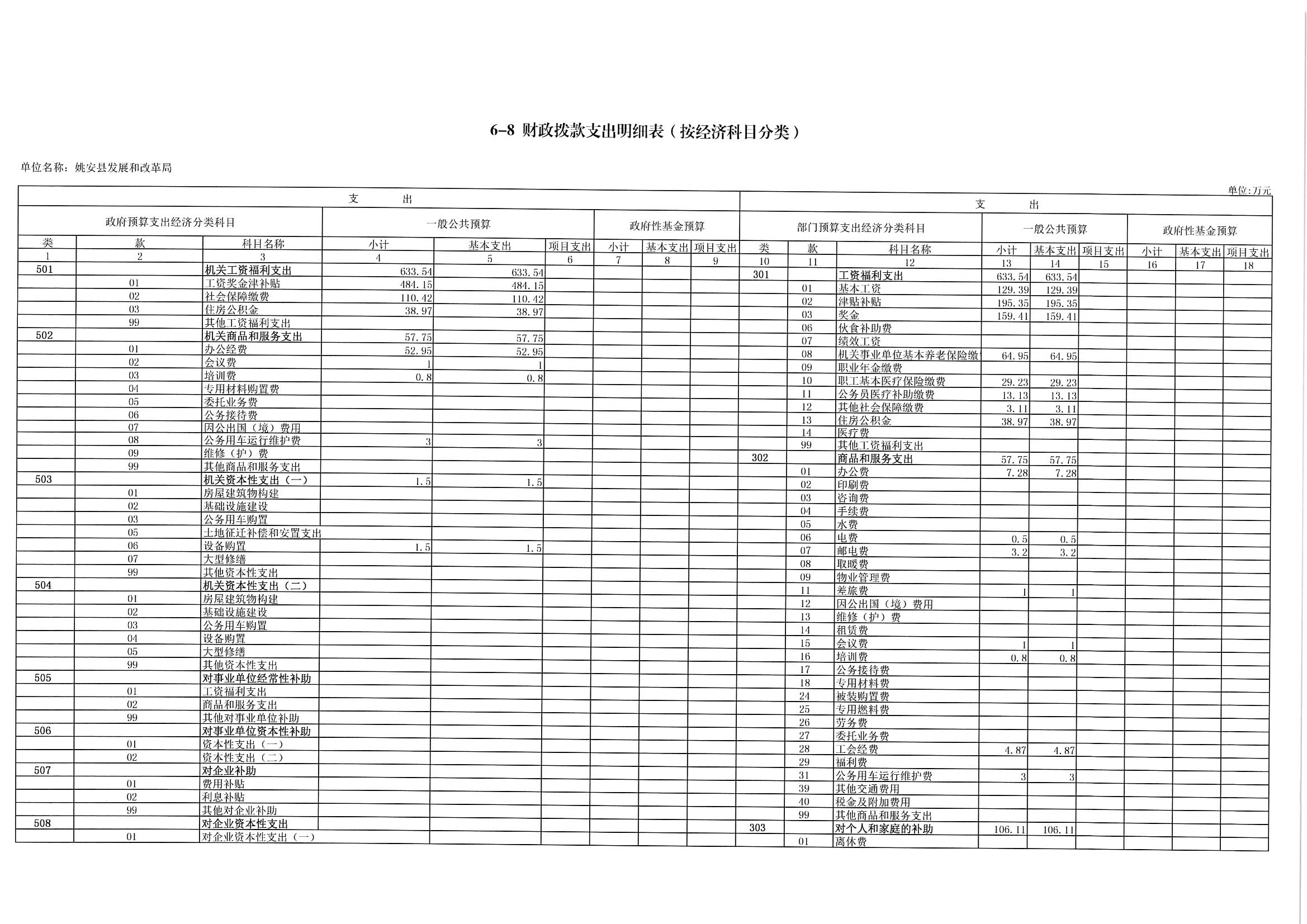 八、财政拨款支出明细表(按经济科目分类)