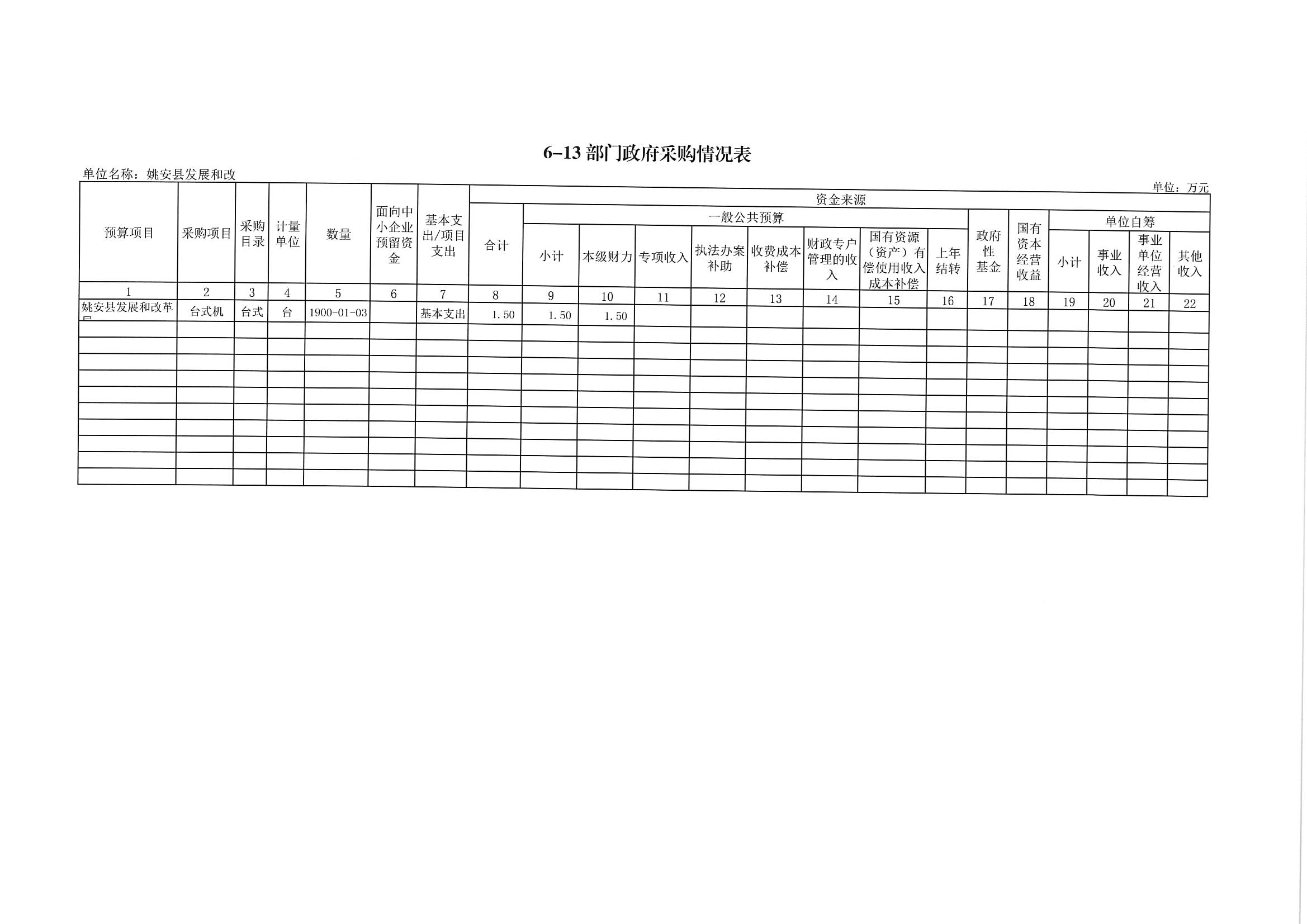 十三、部门政府采购情况表