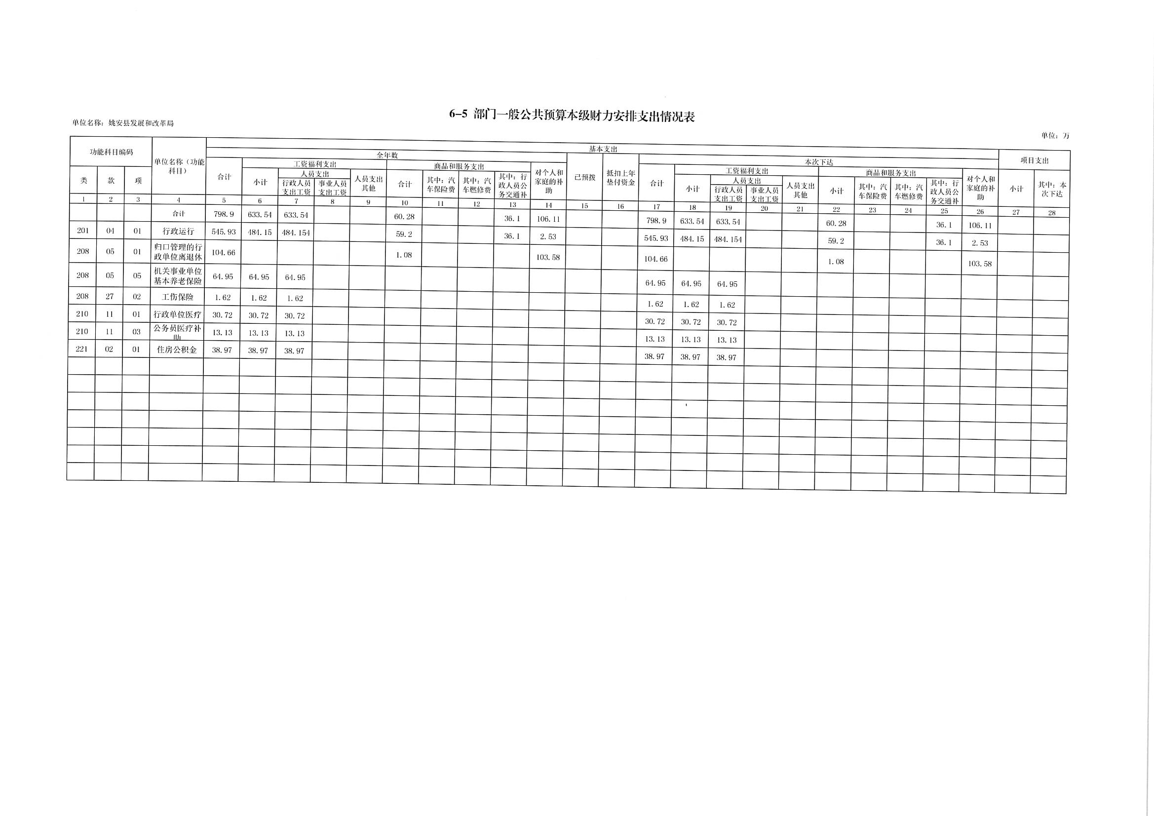 第二部分 姚安县发展和改革局2019年部门预算表
