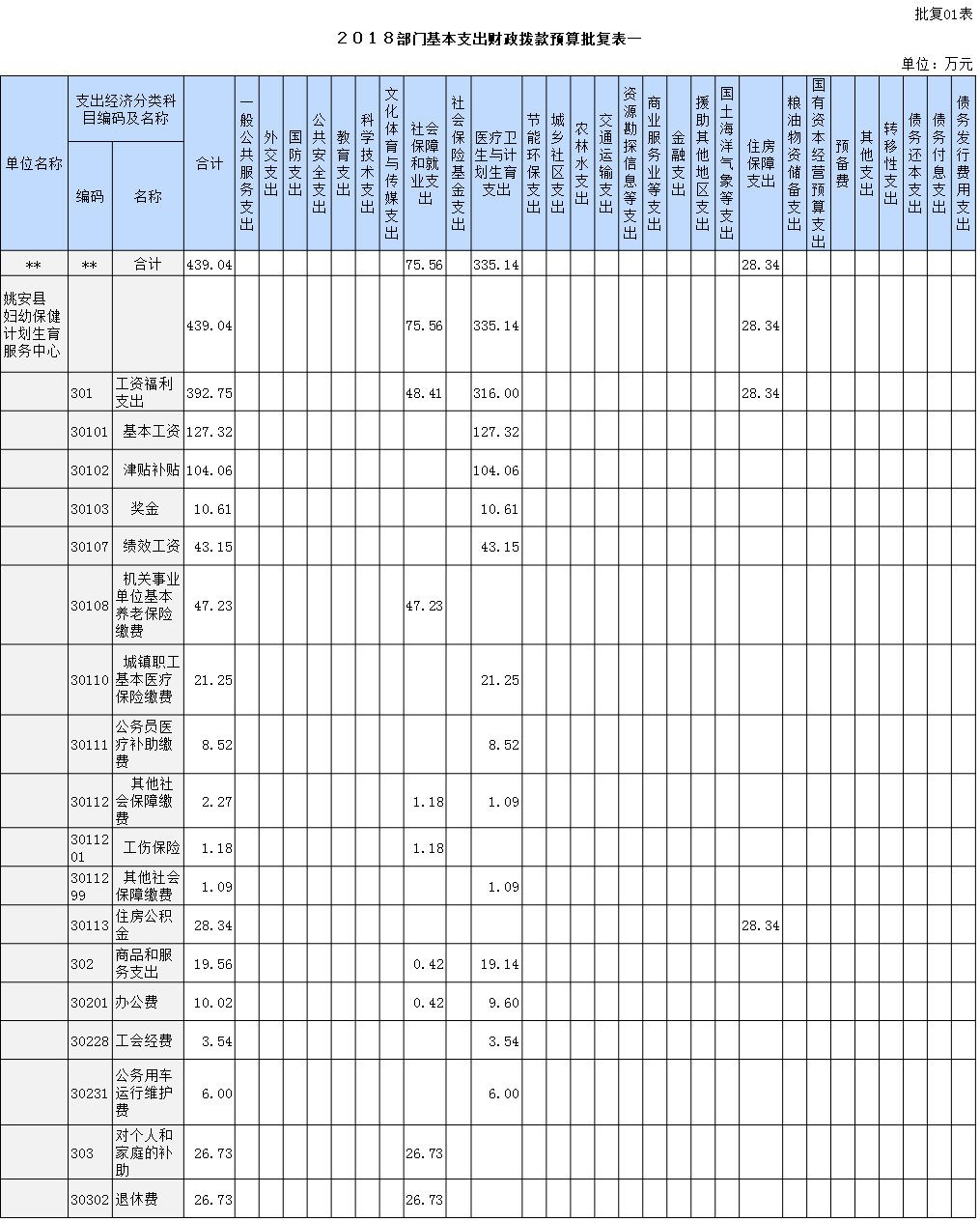 姚安县妇幼保健计划生育服务中心2018 部门预算相关表册