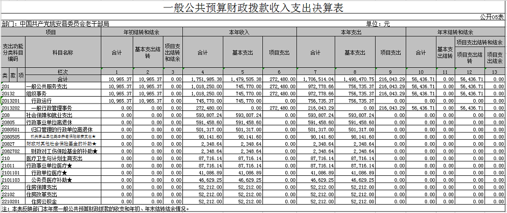 部门:中国共产党姚安县委员会老干部局 单位:元 | |||||||||||||||||