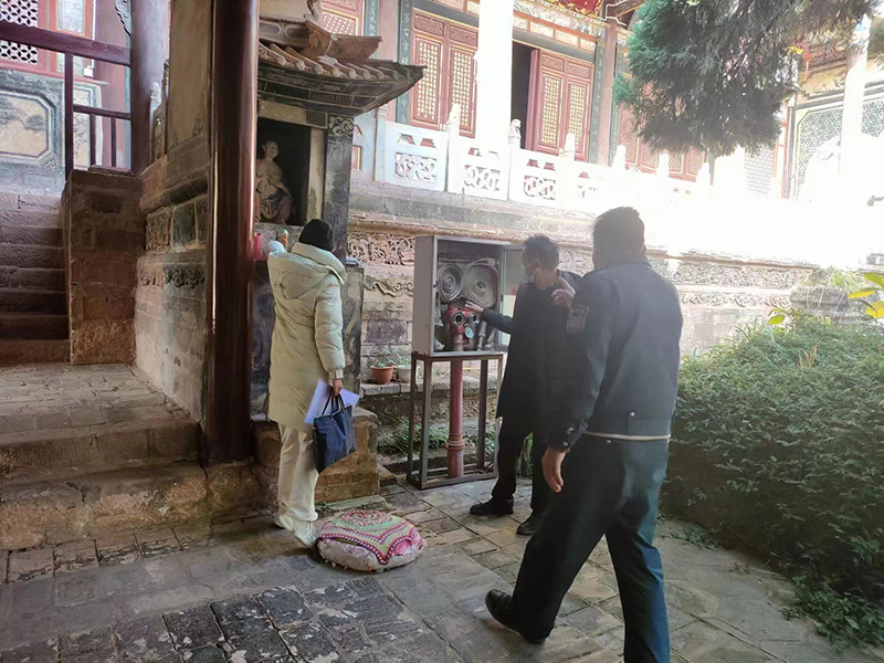 此次全面大检查重点检查了我县2项国家级文物保护单位(龙华寺、德丰寺)以及6项省级重点文物保护单、6项州级重点文物保护单位和部分不可移动革命文物点、部分县级文物保护单位,对各文物保护单位的消防系统、安防设施、电线电路、报警系统、电器设备及明火使用情况和属地安全管理情况进行了详细检查,并重点检查了属地管理的日常文物安全工作台账是否按规定记录存档、各重点文物单位安全通道是否畅通、消防系统是否运作正常,安全控制值班室是否专人值守以及春节期间重点文物保护单位的安全值班排班情况。