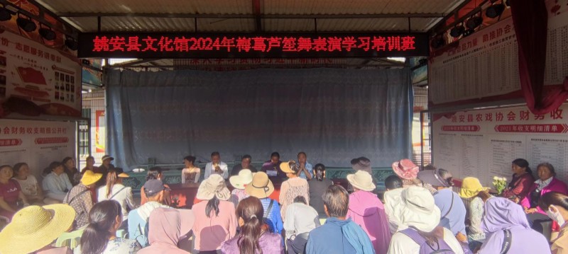 为更好地保护与传承彝族梅葛文化,6月21日,姚安县文化馆和姚安县农戏协会举办了2024年葫芦笙广场舞培训班。全县44支文艺队的文艺骨干在县农戏协会参加葫芦笙广场舞推广培训活动。
