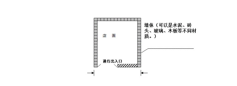 (1)店面测量端点位置:“边对边”两边的端点位于店面开口门面的墙体外围。