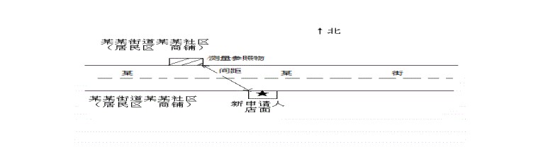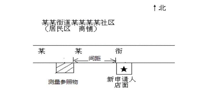 (一)新申请人与测量参照物之间无障碍的,以新申请人店面与参照物最靠近的两边之间的距离进行计算。