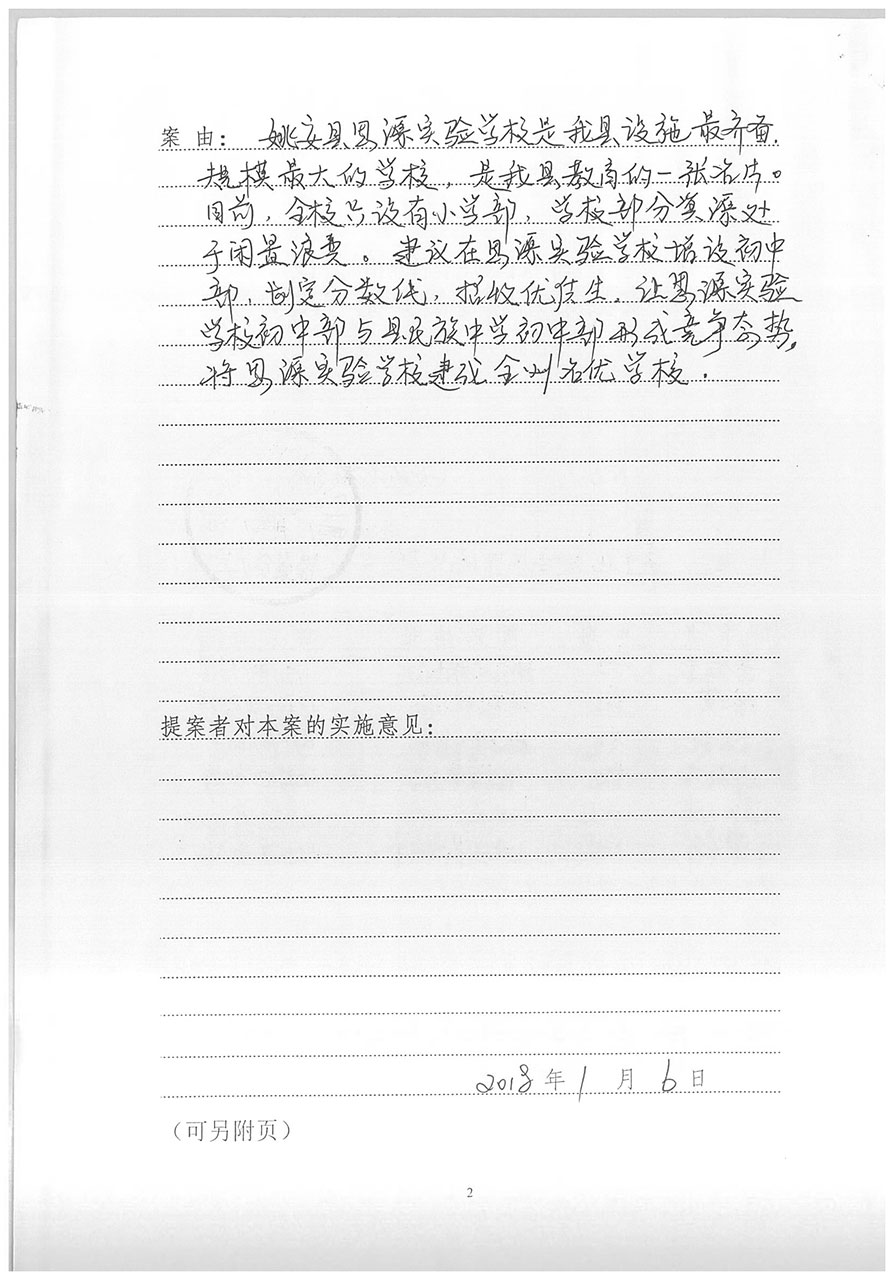 你们的《建议》对思源实验学校的发展提出了非常良好的愿望,针对在姚安县思源实验学校增设初中部这一问题,教育局高度重视,并就学校现有学生的容纳量、资源的配置情况及全县教育均衡发展的相关问题做了调研和分析。